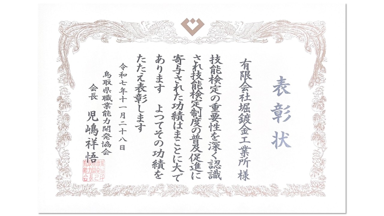 鳥取県職業能力開発協会会長表彰をしていただきました。